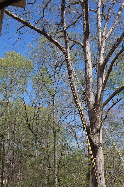 It was a pretty nice weekend weather wise so David tackled a few outdoor projects. He's been wanting to remove some branches off a tree in our backyard that was getting too close to the house. He used a rope saw to get the job done.